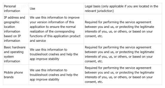 Due to the normal operation and maintenance of this application, the service providers we entrust may need to remotely access your personal data from other countries or regions (including China) other than the country where you are located. The level of protection of personal data in these countries or regions may be In the region/country where you domicile, we will implement appropriate safeguards to protect your personal data in accordance with this Policy. In order to fully protect the security of your personal data, we will sign a standard agreement on data cross-border transmission as the corresponding transmission mechanism or strictly abide by the relevant laws and regulations. You may obtain a copy of our appropriate safeguards by contacting us.